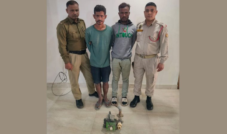 Basistha Police arrested two suspected burglars during a night patrol at Balughat. The accused, identified as Bapukan Ali and Rasidul Hoque, were caught in possession of a stolen water pump, which was recovered during a search.